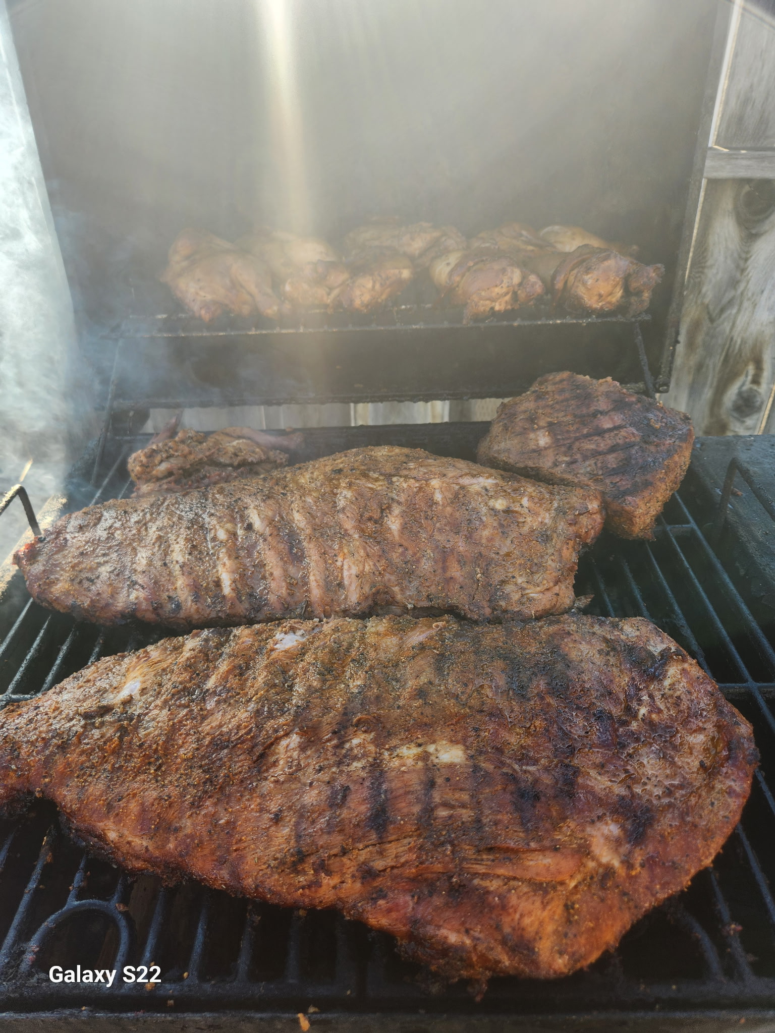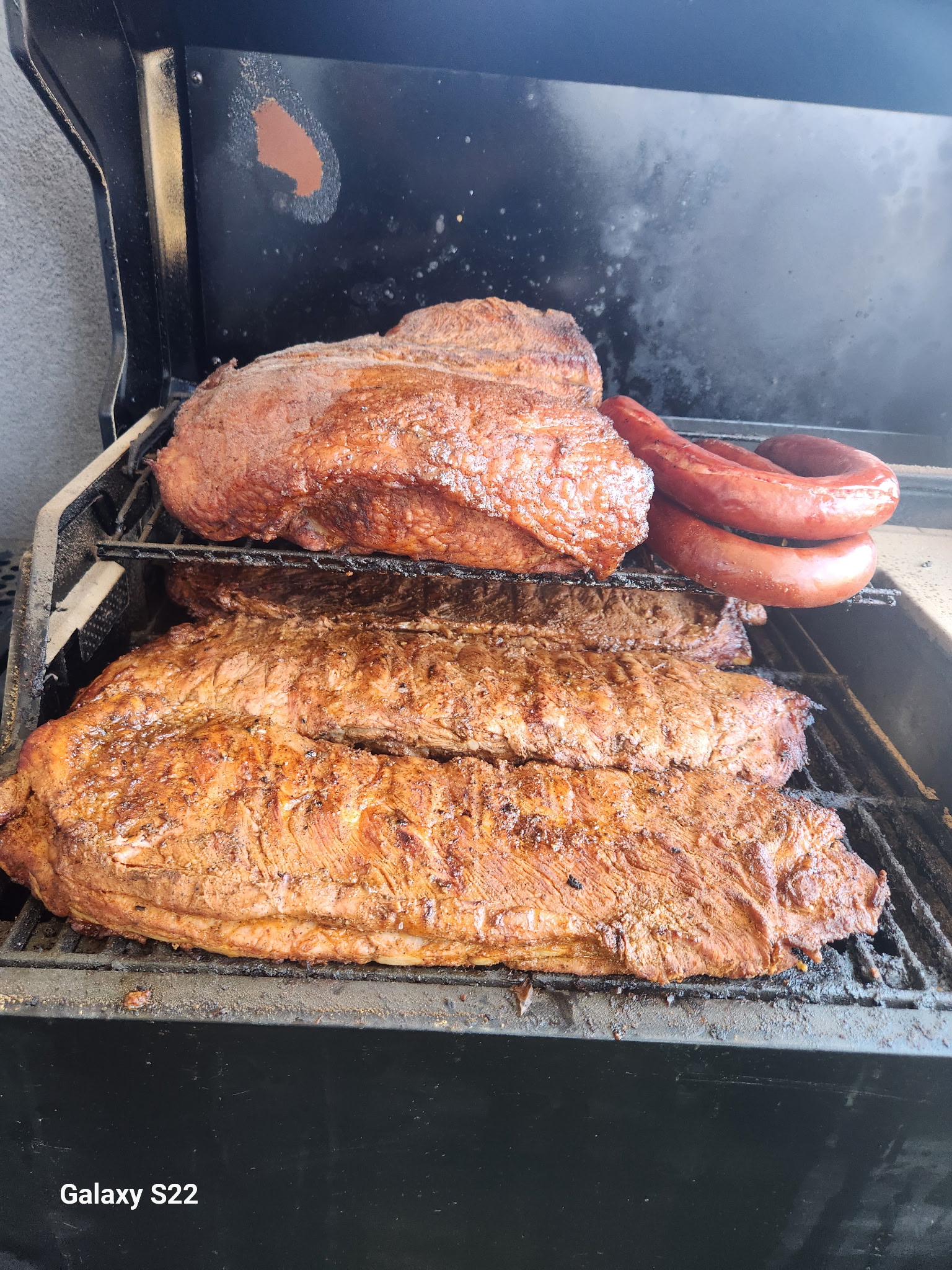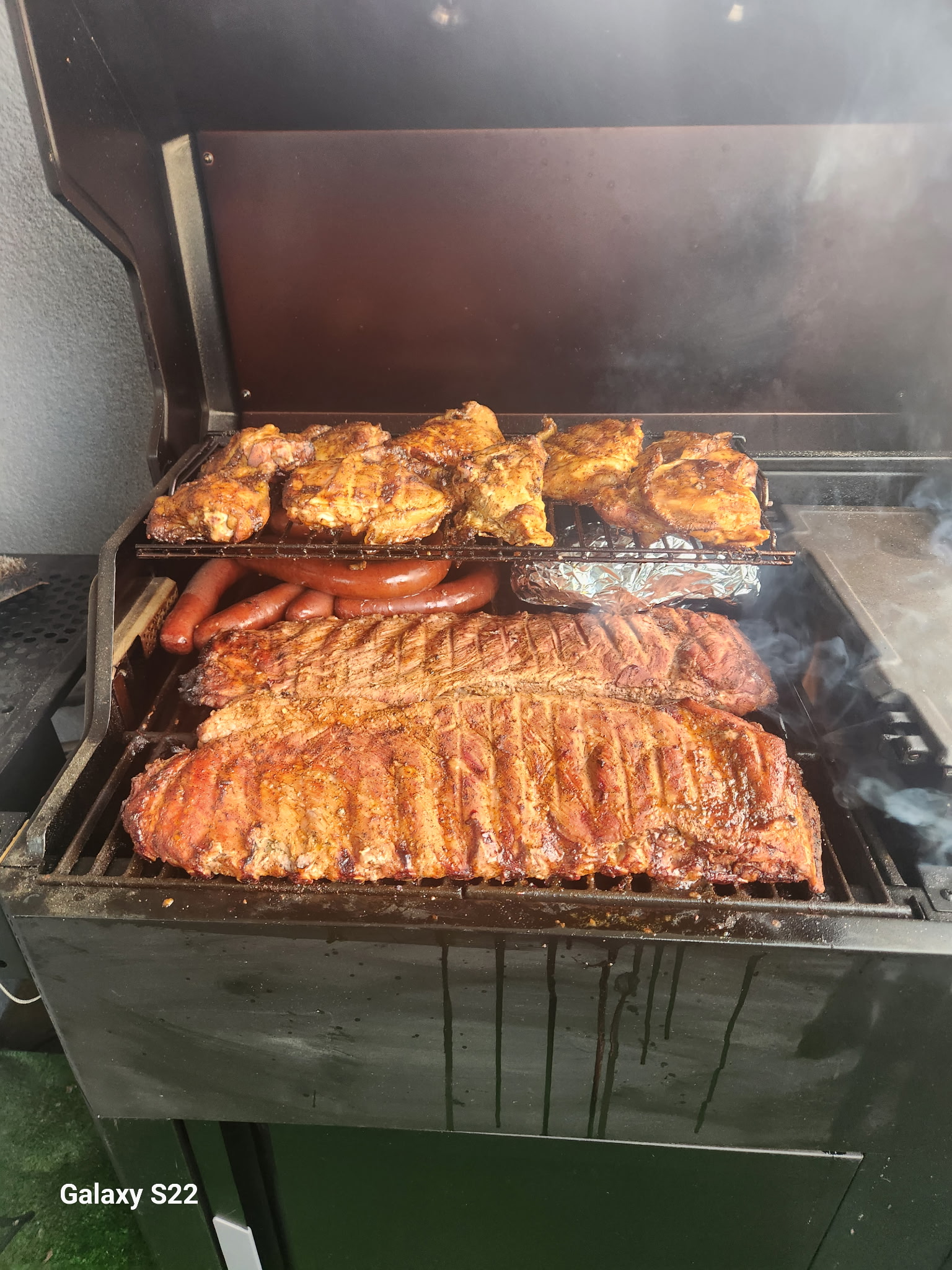 Tender pork ribs, tasty sausage, and juicy chicken thighs.